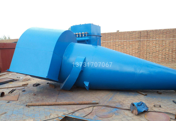 含塵氣體從進口處切向進入后,氣體在獲得旋轉(zhuǎn)運動的同時,氣流分成上、下分開,形成雙旋渦運動,粉塵在排氣底部即雙旋渦的分界處產(chǎn)生強烈的分離作用。較細較輕的塵粒由上部旋渦氣流帶往上部,在頂蓋下面形成強烈旋轉(zhuǎn)的灰環(huán),產(chǎn)生塵粒的聚集,并被從特設(shè)的旁路分離室上部洞口引出,經(jīng)旁路分離室下部螺旋槽,從除塵器外壁回風口切向引入除塵器筒體下部與內(nèi)部氣流匯合,粉塵被分離而落入灰斗。另一部分較粗重的粉塵顆粒則在下旋渦氣流帶動下,沿除塵器下段經(jīng)由上旋渦氣流的類似過程,將粉塵分離并進入灰斗。